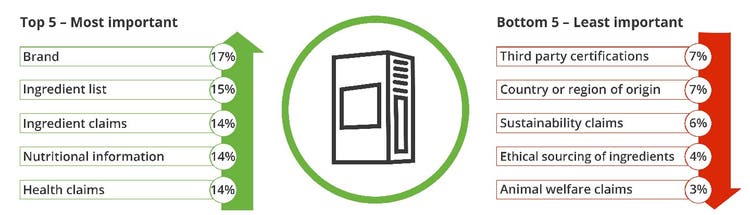 Most and least important on-pack information influencing packaged food and beverage purchases