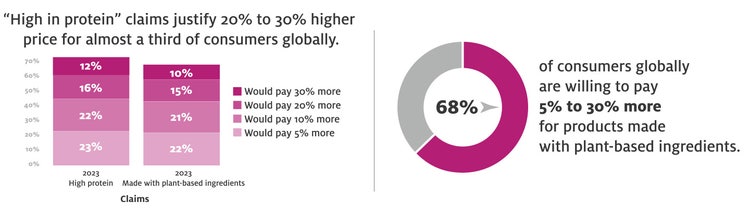- 68% are willing to pay more for food and beverage products with ‘made with plant-based ingredients’ claims1