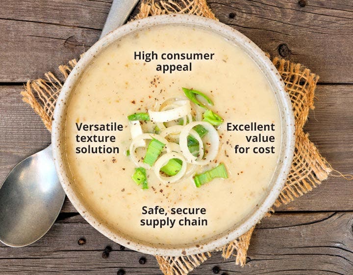 Depending on the type of food product, benefits can include enhanced thickening, gelling, and freeze-thaw stability.