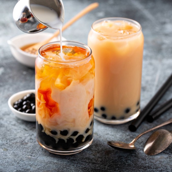 In its pearl form, tapioca is commonly used in sweet treats like bubble tea (also called boba milk tea) and tapioca pudding. Both are cold, creamy desserts with chewy tapioca pearls as the star ingredient.
