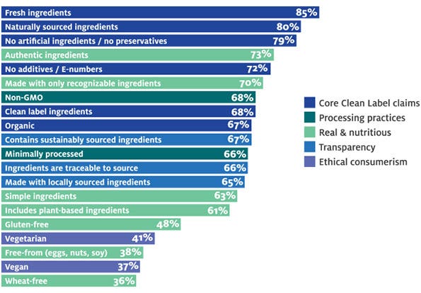 Percentages indicate what respondents say are the most important label claims they want to see on packaged foods and beverages.